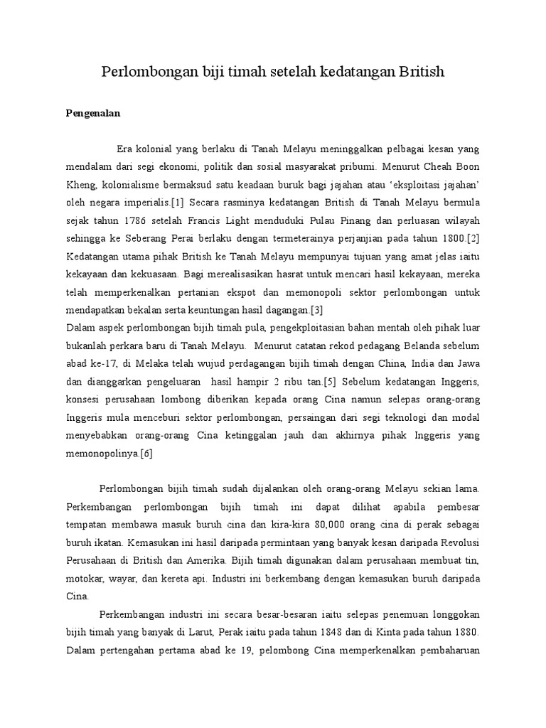 Perlombongan Biji Timah Setelah Kedatangan British Repaired Pdf